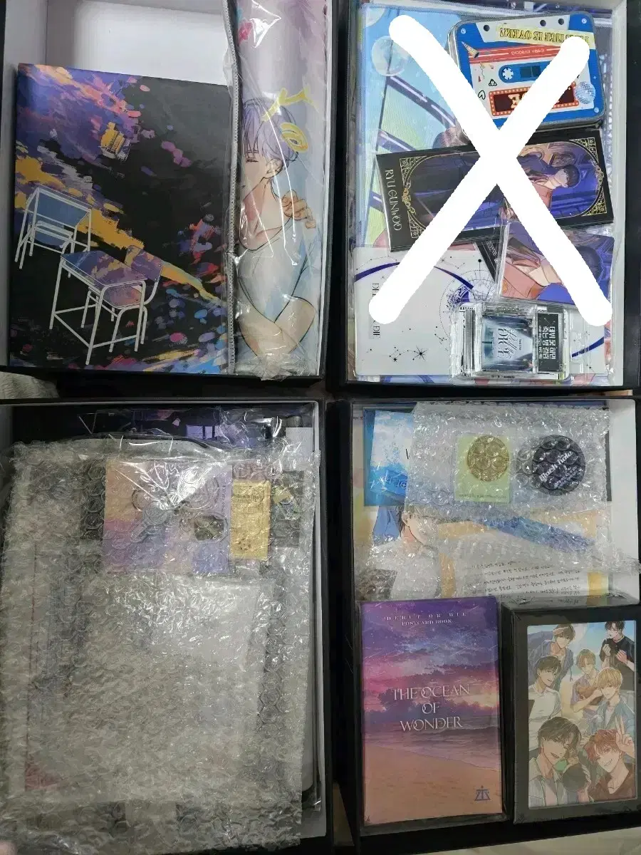 데못죽 1,2,3부 초판 한정 굿즈 박스 세트 판매합니다. 포스터, 엽서, 아크릴 스탠드 등 다양한 굿즈들로 구성되어 있습니다. 박스에 담겨 안전하게 보관되어 있습니다.