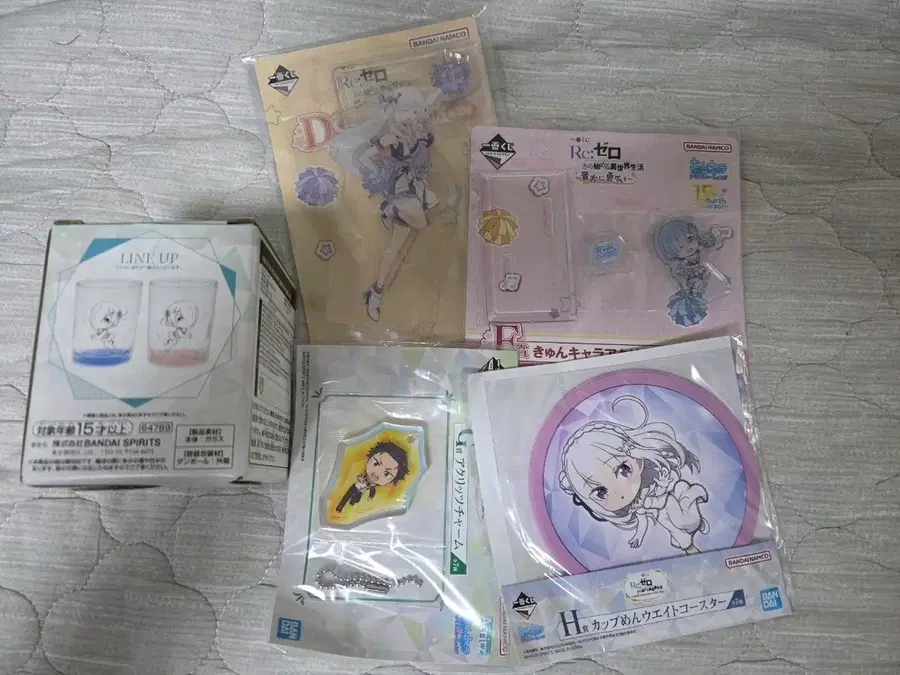 미개봉 리제로 굿즈 일괄 판매합니다. 렘, 에밀리아, 스바루 등 다양한 캐릭터 굿즈가 있습니다. 아크릴 스탠드, 컵, 코스터 등 다양하게 구성되어 있습니다. 문의 없으시면 바로 안전결제해주시면 됩니다!