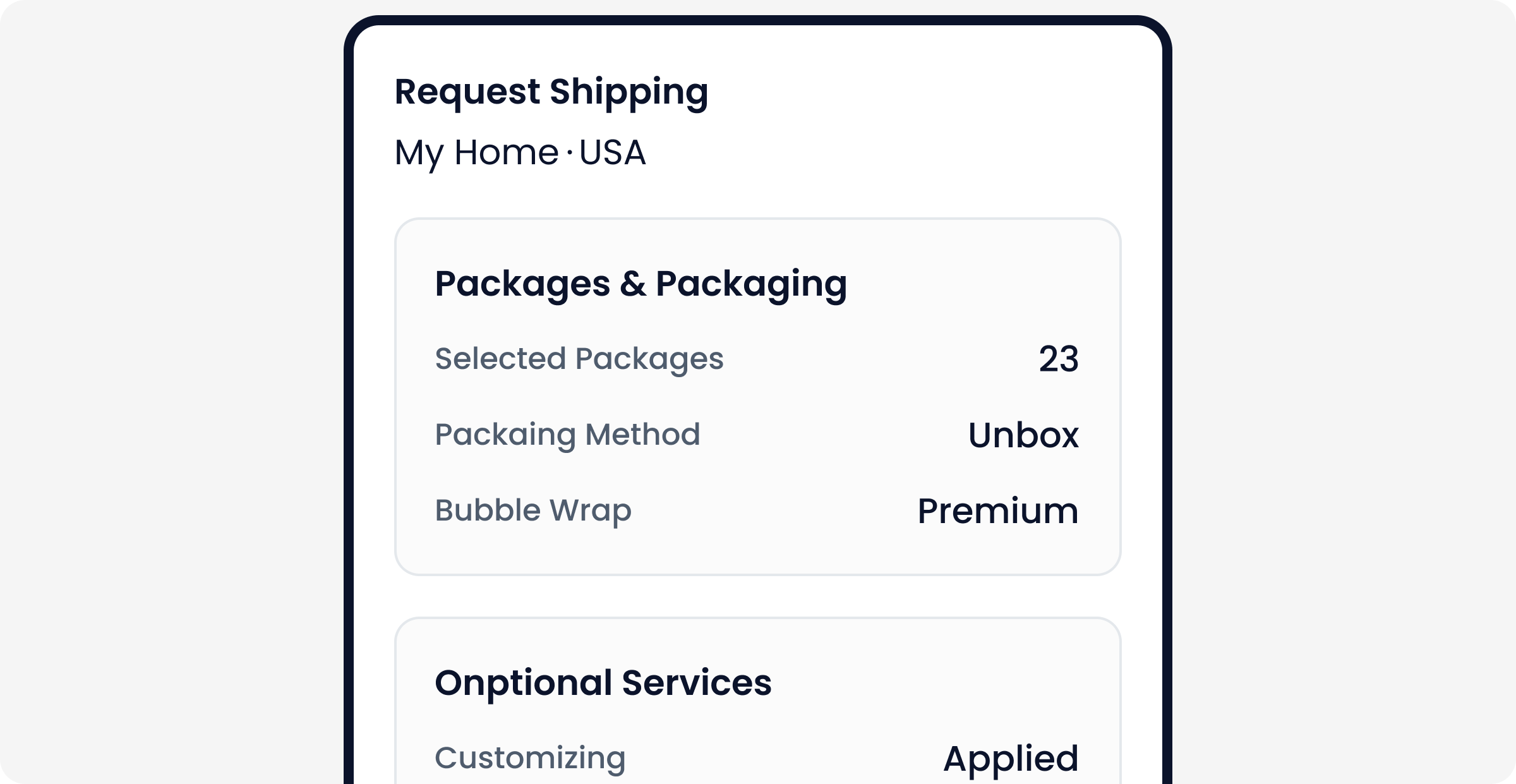 Submit a shipping request for your packages.